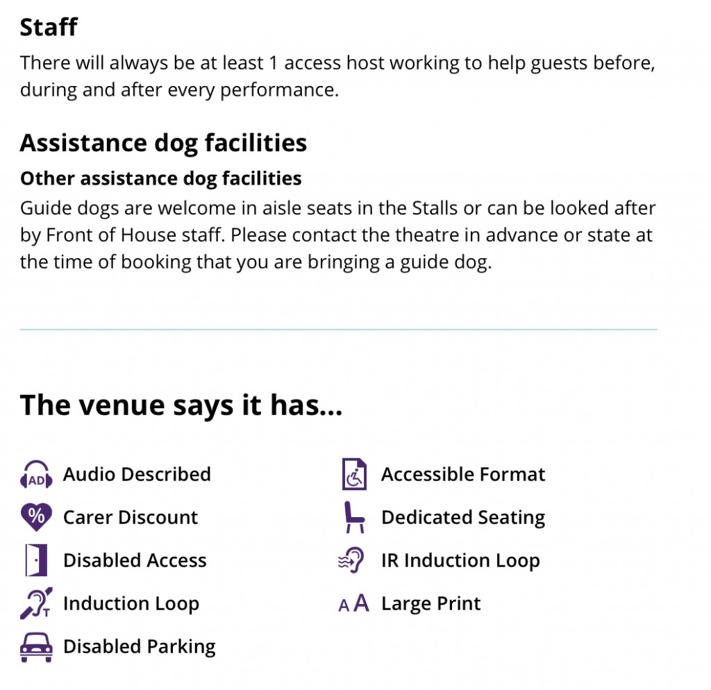 4) Ενημέρωση του κοινού: Επειδή ειδικά στις περιπτώσεις κινητικών και φωνητικών σπασμών υπάρχει περίπτωση να ανησυχήσουν θεατές, ενδείκνυται οι παρατηρήσεις τους να απαντώνται με ενημέρωση για την ύπαρξη αναπηρίας, καθώς και για το ότι υπάρχουν συγκεκριμένες θέσεις για τα άτομα αυτά. Οι υπάλληλοι θα πρέπει να είναι ενήμεροι γι’ αυτό. Επίσης, αν προληπτικά αυτό ανακοινωθεί στις σελίδες κρατήσεων και με σχετική σήμανση in situ, τότε διευκολύνουμε την ενημέρωση του κοινού